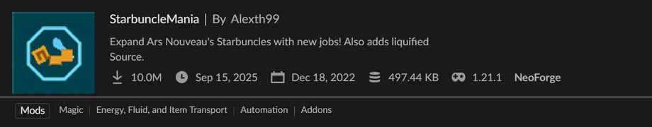 様々な呪文を自分で構築できる『Ars Nouveau』と、アドオンの紹介と日本語化リソースパックを配布しています。
