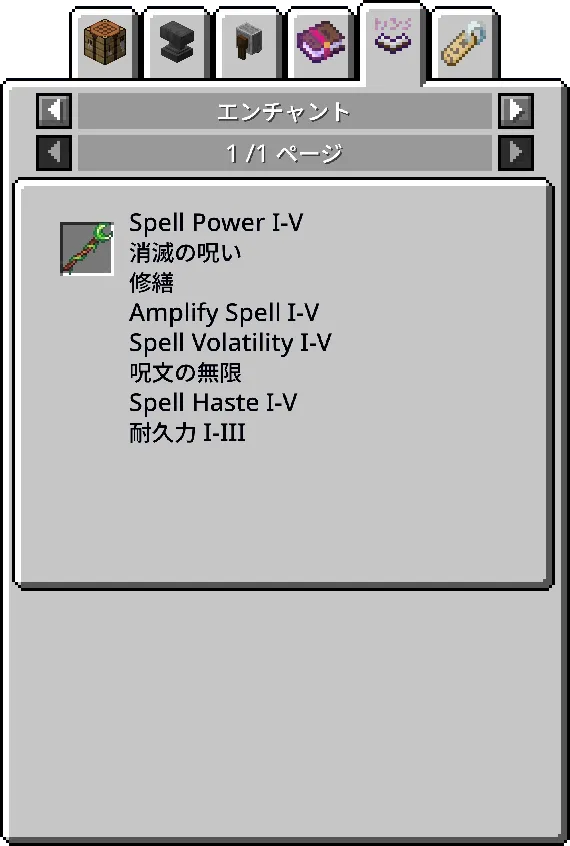 - 無限の魔力:Spell Engineで追加されるエンチャント。杖などの魔法武器に付けると、魔法発動のコストを無視できる場合があります。