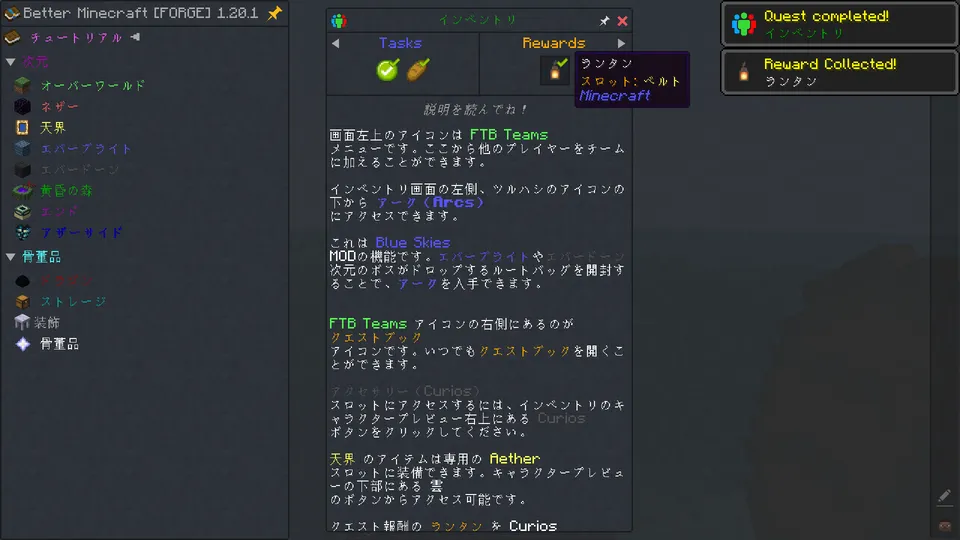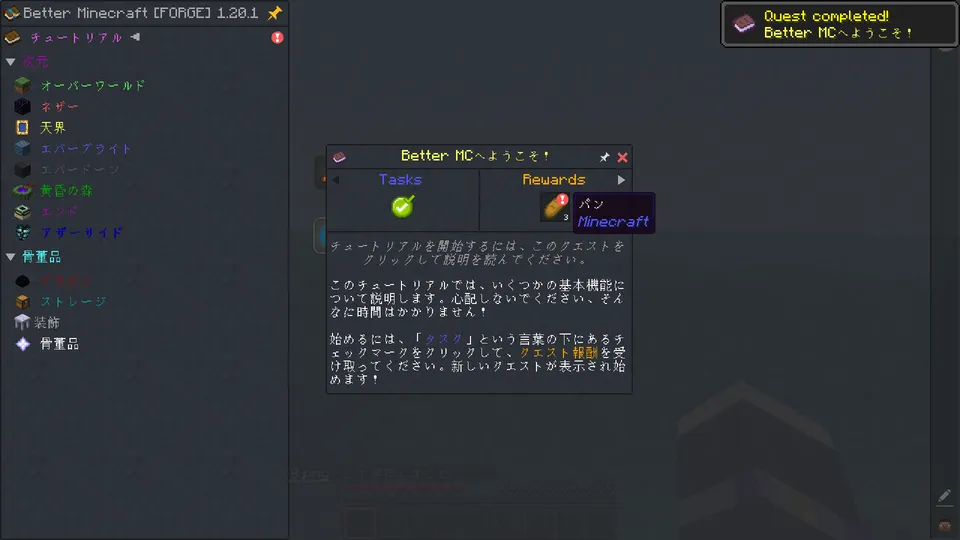 Better MCでは、次に何をすべきか迷ったときの最高の道しるべとして「クエストシステム」が用意されています。