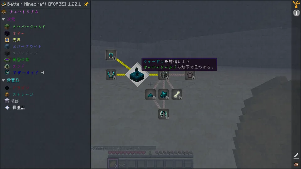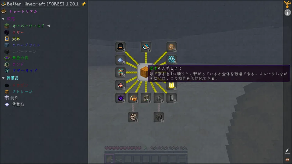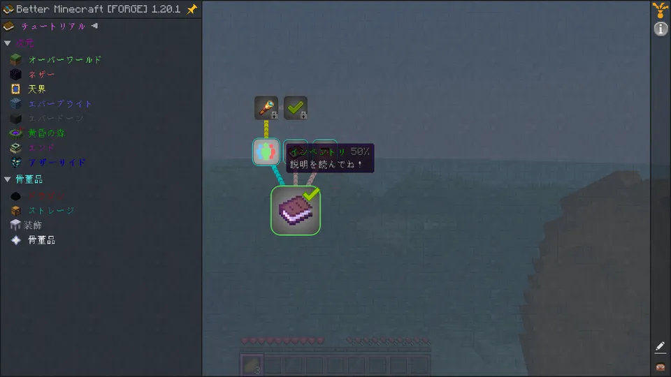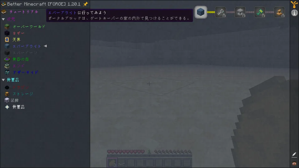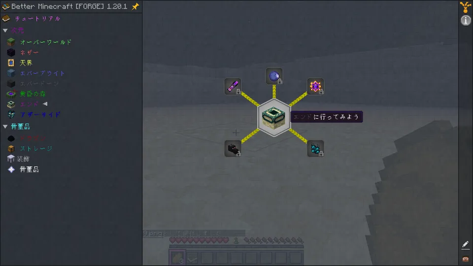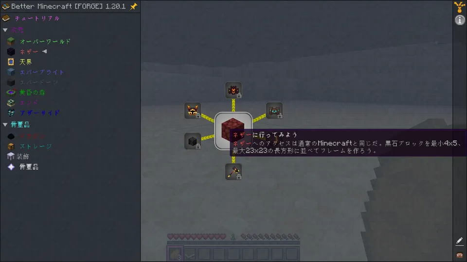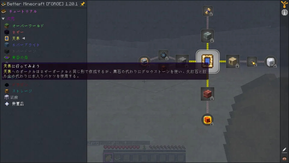 そこには「オーバーワールド」や「ネザー」、そして「天界」や「黄昏の森」といった新たな次元での目標が記されています。