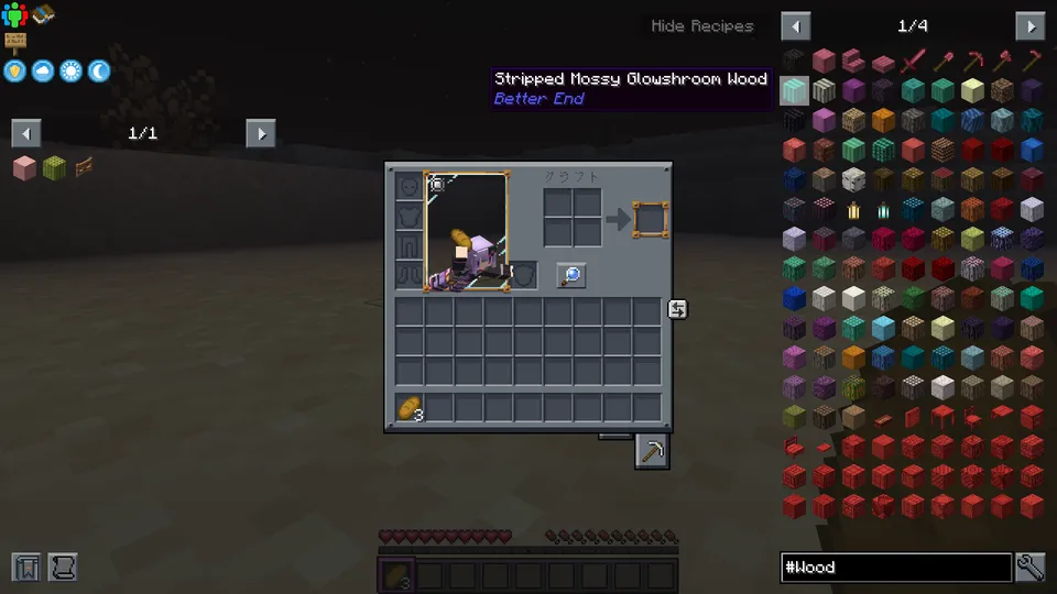 #Woodまた、JEIのアイテムリスト上でアイテムにカーソルを合わせてAキーを押すと、お気に入り登録ができ、画面左のリストに固定表示されるので便利です。