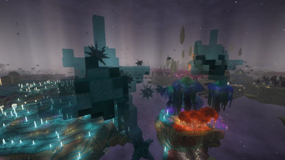 エンドの島々の内部には独自の生態系を持つ洞窟が生成され、地表とは異なる探索が楽しめます。