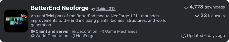 本記事では『BetterEnd Neoforge』の紹介と日本語化リソースパックを配布しています。