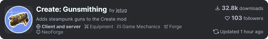 - Createのシステムで製造: 銃や弾薬の作成にはCreateの加工ライン(メカニカルプレスやミキサーなど)を使用すると思われます(詳細は実際にプレイが必要ですが、説明には”crafted using the Create mod mechanics”とあります)。これにより、銃を作るための自動化ラインを構築する楽しみが増えます。