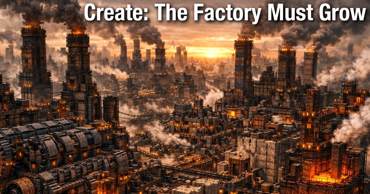 『Create』に内燃機関や発電機を追加する『Create: The Factory Must Grow』の紹介と日本語化リソースパックの配布を行っています。
