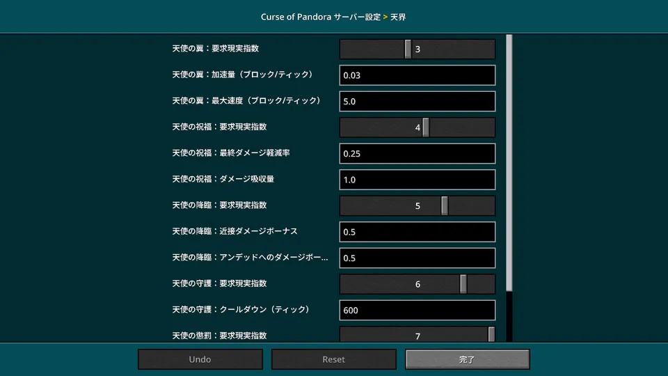 | 近接の呪 | ツール以外のリーチボーナス無効リーチの上限を 6.0 に固定 | リーチが 2.0以下 の武器使用時、リーチが +50% 上昇 |