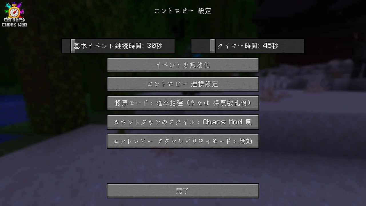 30秒ごとにランダムイベントが発生する混沌とした世界を楽しめる『Entropy: Chaos Mod』の紹介と日本語化リソースパックを配布しています。