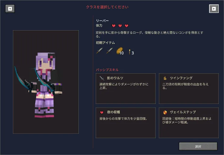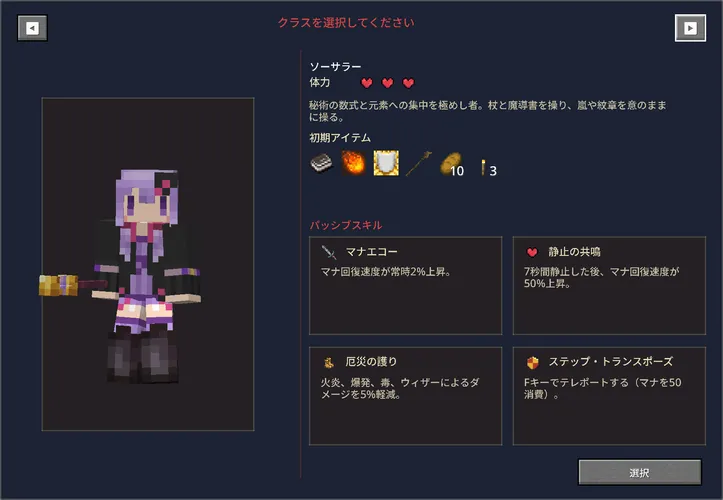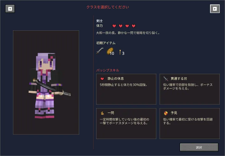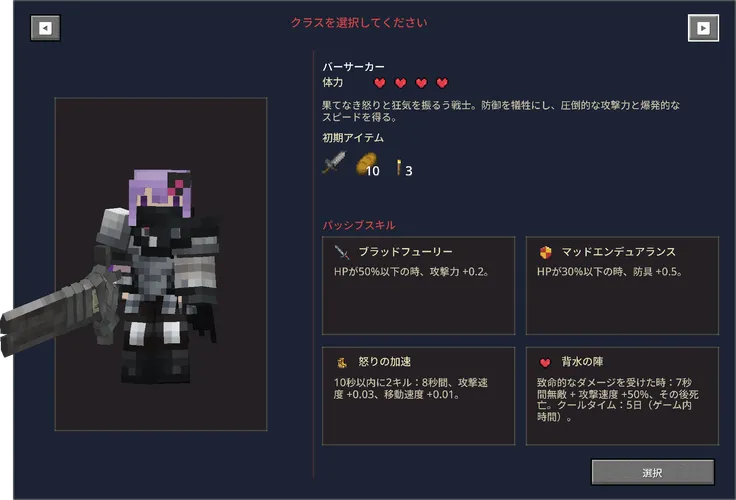 2. 「クラス選択」画面から、自分のプレイスタイルに合った職業を選んでください。