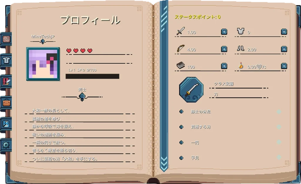 1. 「M」キーを押してプロフィール(ブックUI)を開きます。※他のMODとキーの干渉している場合があります。