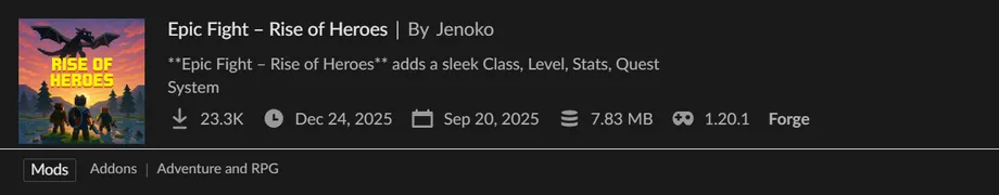 『Epic Fight』をベースに、クラス、レベル、ステータス、クエスト、そしてパーティーシステムを統合した大規模なRPGオーバーホールMOD『Epic Fight – Rise of Heroes』の紹介と日本語化リソースパックを配布しています。