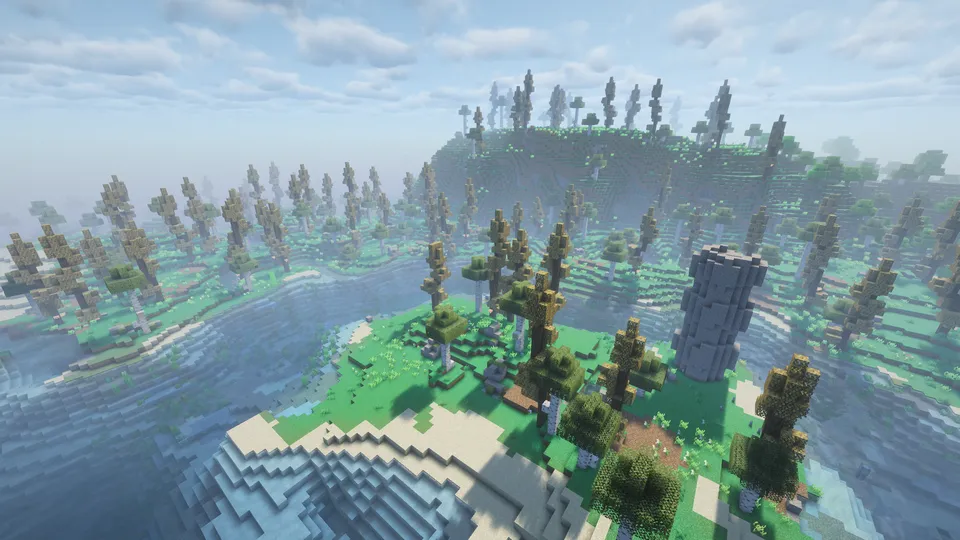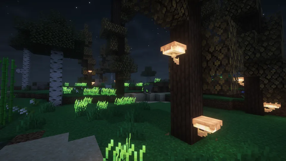 - 黄金の森 (Golden Forest): 黄色い葉の木々が広がる美しいバイオームです。ここには「桃の木(Peach Tree)」が生えており、夜には発光する「フォレストランタン」が実ります。