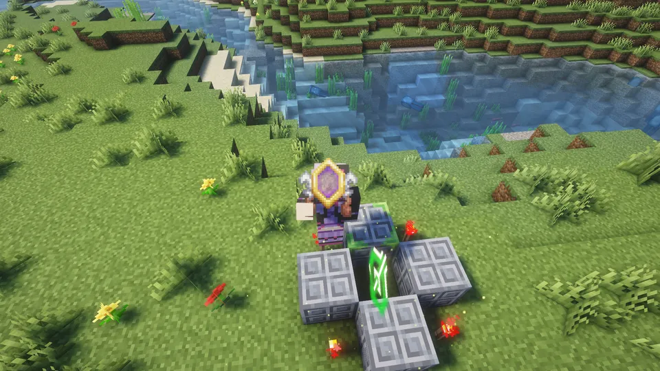 - レッドストーン信号で起動すると、岩がルーンからエッセンスを吸収し始めます。