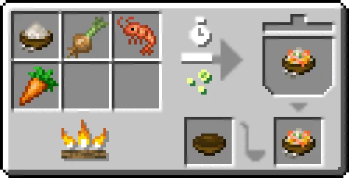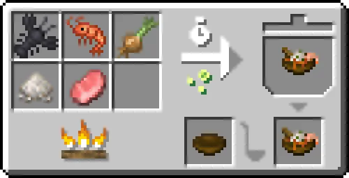 - 現実の料理と、両MODの世界観を考慮して作られた15種類の新しい料理を作成できます。