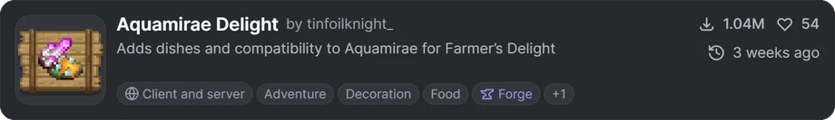 - 「Sea Stew」と「Poseidon’s Breakfast」のレシピおよびテクスチャが変更され、Farmer’s Delightのスタイルにより馴染むようになります。(Aquamirae側のアイテムです)