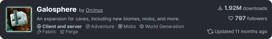 新たなバイオームやゲームメカニクス、モブなど、さまざまな要素を追加し、地下世界の探索をより豊かにすることを目的とした『Galosphere』の紹介と日本語化リソースパックを配布しています。