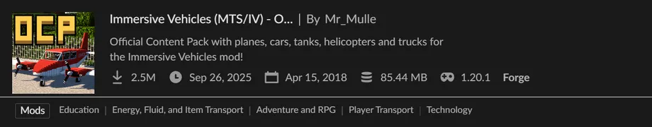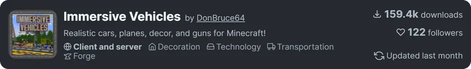 リアルな車・飛行機・装飾・武器を追加する『Immersive Vehicles』とアドオンの紹介と日本語化ファイルを配布しています。