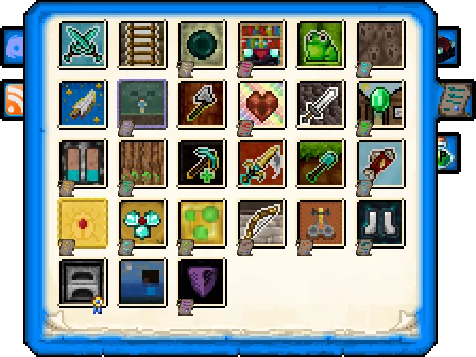 | 経験値収穫者 | 採掘・動物の繁殖・釣り・モンスター討伐で得られる経験値を増加させます。 | エルダーガーディアンから33.3%の確率でドロップ |