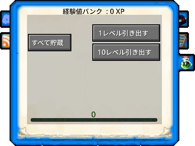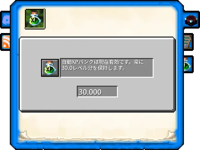 | 自動XPバンク | 所持レベルを一定に保ち、余剰経験値をバンクに自動保存。 |