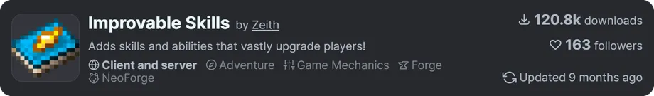 プレイヤーに多彩なスキルと能力を追加し、大幅に強化できる『Improvable Skills』の紹介と日本語化リソースパックを配布しています。