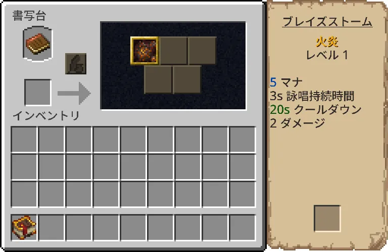 | 書写台 | 魔導書に巻物を挿入して呪文を書き込んだり、取り出したりする |