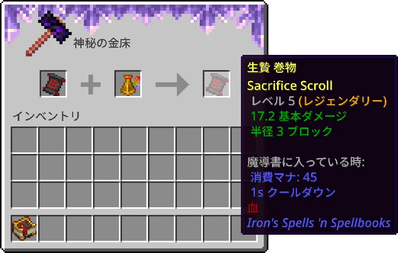 - 巻物のレベルアップ:巻物に適切なインクを使用することで、さらに上位レベルの巻物を作成できます。