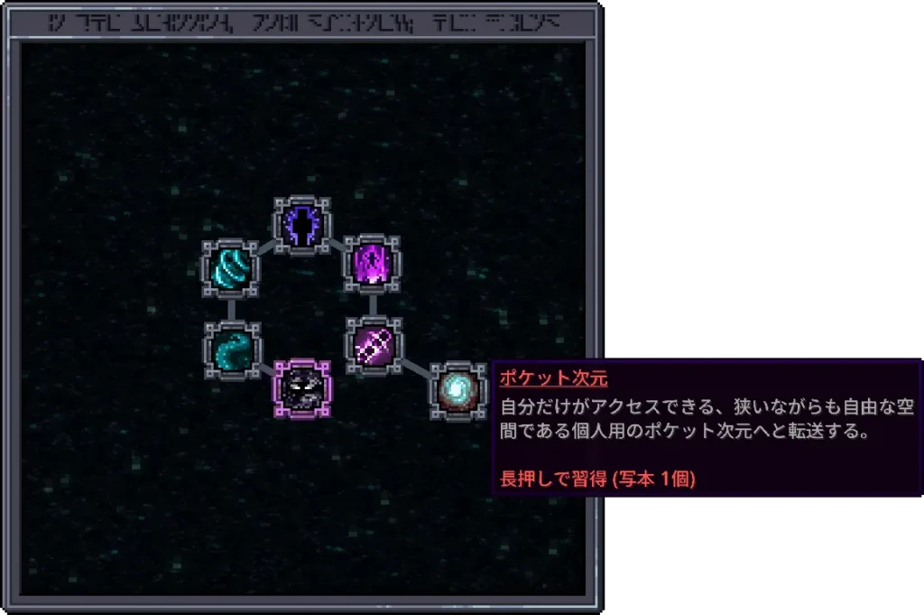 | 古の魔法 | エルドリッチ系統の呪文を復元する | 古の知識のの破片と残響の欠片で復元し、エルドリッチの写本を使用する |