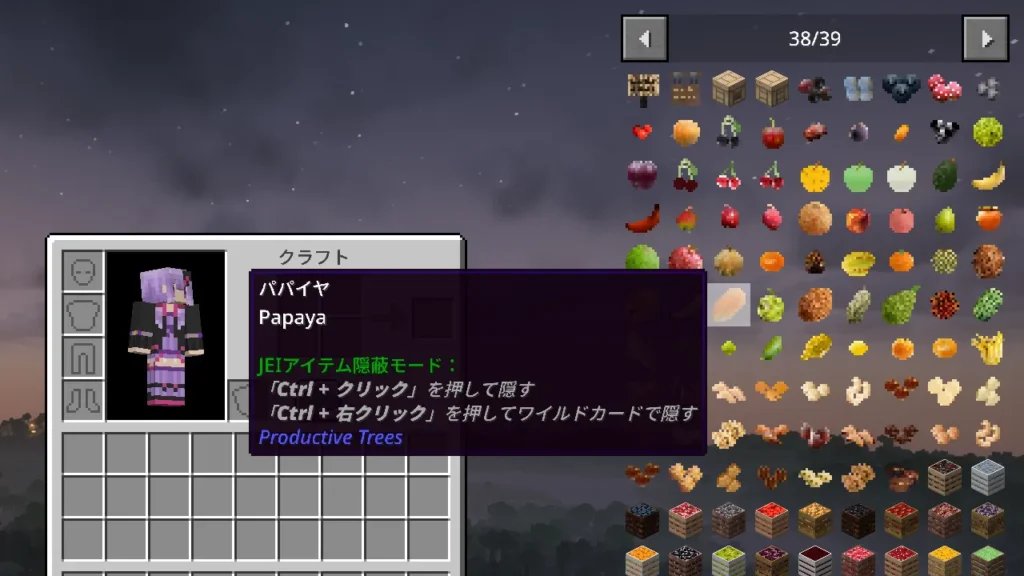 - 特定のMODのアイテムをすべて隠す: アイテムにカーソルを合わせて Control + Shift + 左クリック。