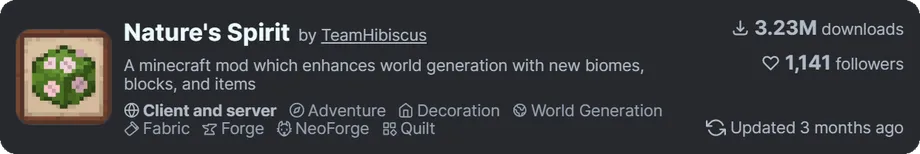 多数の新バイオーム を追加する『Nature’s Spirit』の紹介と日本語化リソースパックを配布しています。