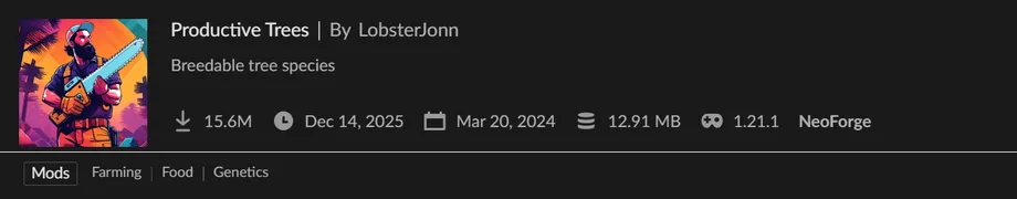 樹木の交配をメインテーマにした『Productive Trees』 の紹介と日本語化リソースパックを配布しています。