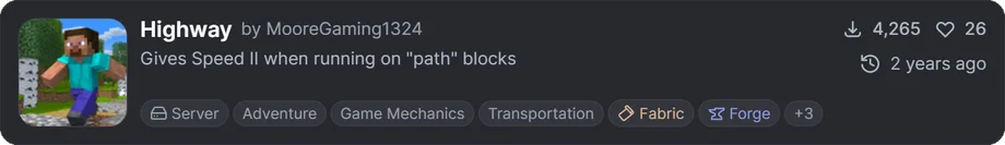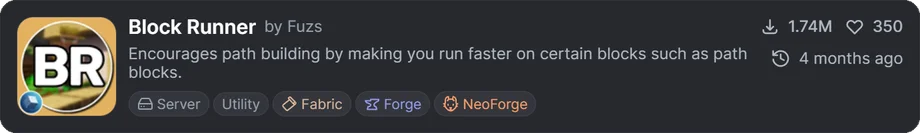 このMODは特定のブロック歩行・走行時の速度自体を上げてくれます。
