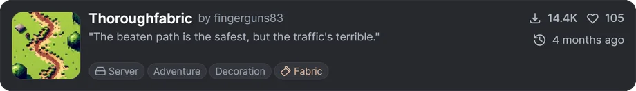 先ほど紹介したMODと名前が「s」しか違いませんが、こちらはデータパックをベースにした、より軽量でシンプルな構造のMODです。