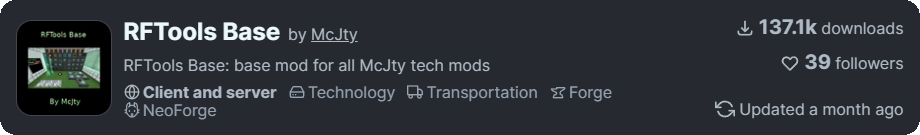 このMODは RFTools Power と一緒に使うことを前提としており、RFTools Base と McJtyLib に依存しています。