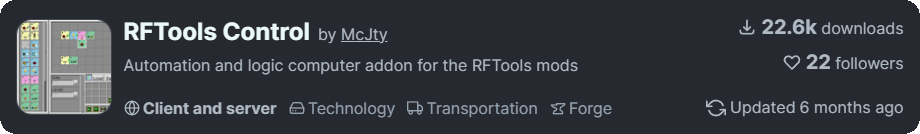 RFTools Controlは、RFToolsシリーズのアドオンMODで、視覚的なグリッドベースのプログラミング言語を使って自動化制御を行うことができます。