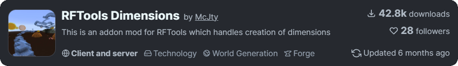 RFTools Dimensionsは、RFTools本体を必要とするアドオンMODで、