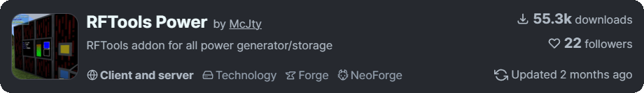 RFTools Powerは、RFToolsシリーズのアドオンMODで、複数の発電装置および電力貯蔵システムを追加します。