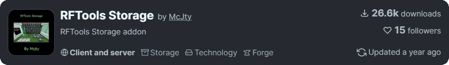 RFTools Storageは、RFTools BaseのアドオンMODで、ストレージシステムおよびそれに関連する機能を追加します。