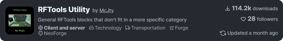 RFTools Utilityは、元々のRFToolsの1.14以降対応版であり、多くの汎用ツールやユーティリティを提供するMODです。