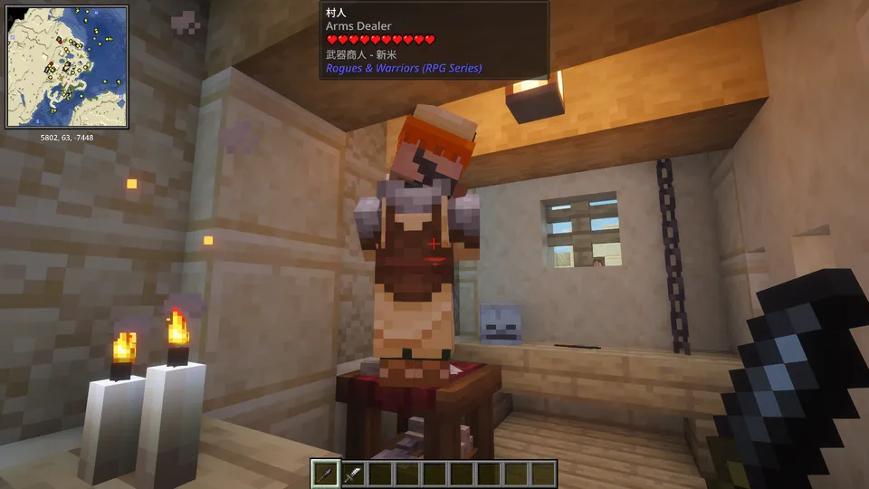 - 雇用する方法: 自分の拠点で取引したい場合は、「武器工作台」を作成して無職の村人の近くに置くことで、武器商人に就職させることができます。