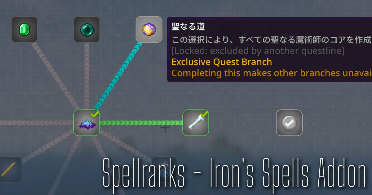 『Iron’s Spells ‘n Spellbooks』のアドオンで魔法ランク進行システムを追加する『Spellranks – Iron’s Spells Addon』の紹介と日本語化リソースパックを配布しています。