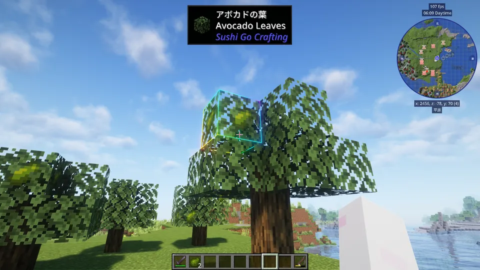 アボカドの葉部分に実がなっていて、右クリックすることでアボカドの実を収穫することができます。