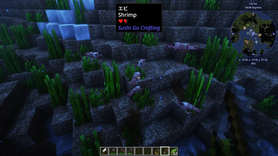 ちなみに別MOD『Apotheosis』を導入している場合、エビと竹でフグをクラフトできます…