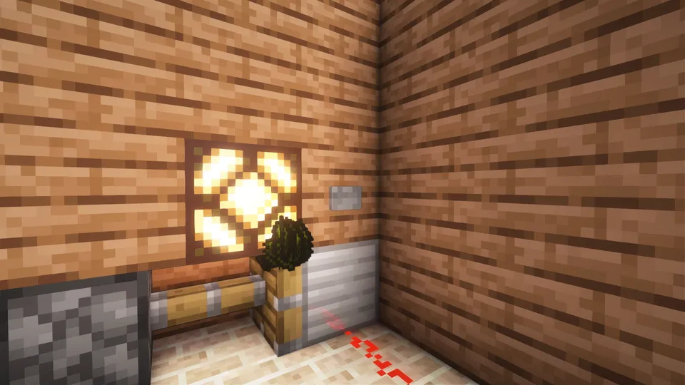 ボタンを押すことによりレッドストーン信号を発生させて、ピンストンを稼働させます。