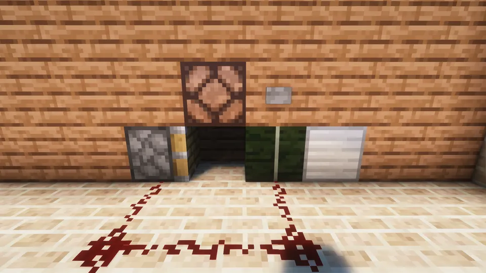 バニラブロックのピストンと鉄ブロック、ピストンを稼働させるためのボタン(又はレッドストーン信号発生源)を組み合わせ、鉄ブロックに向けてピストンを押し出す装置を作る必要があります。