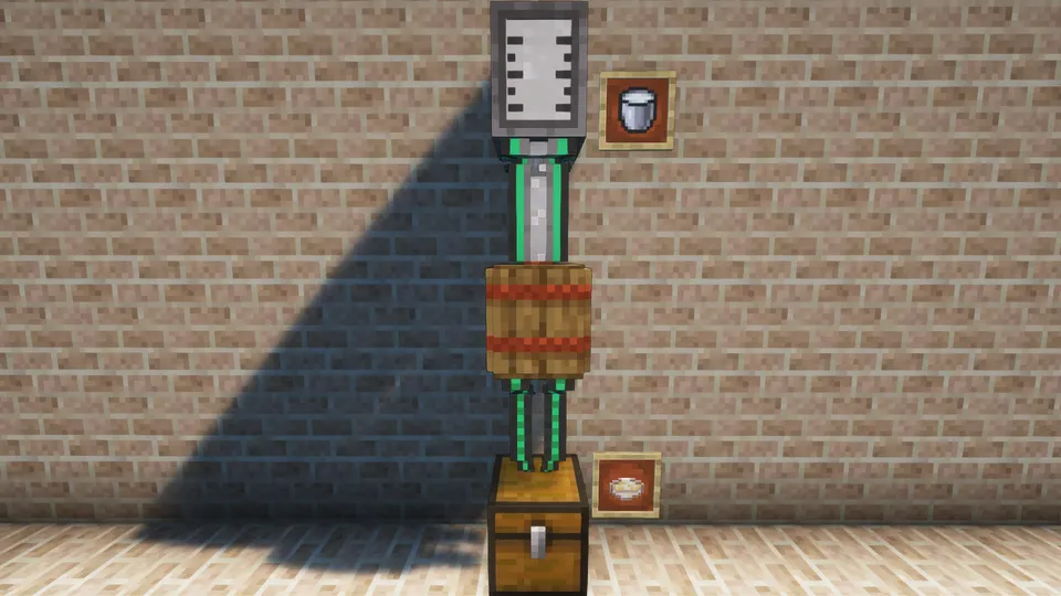 - 水の投入は、発酵樽ブロックに水バケツをクリックか発酵樽UIの流体スロットに水バケツを使ってください。