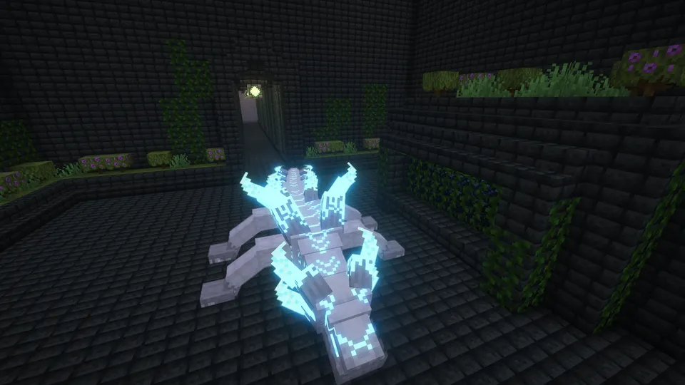 | リッチ | Lich | 200+ | スケルトンのネックレス、魔法の粉、金(塊/インゴット/ブロック)、本、骨、ウィザースケルトンの頭 | オーバーワールド全域 | 夜空に浮かぶ不吉な影。テレポートや召喚を行う。 |